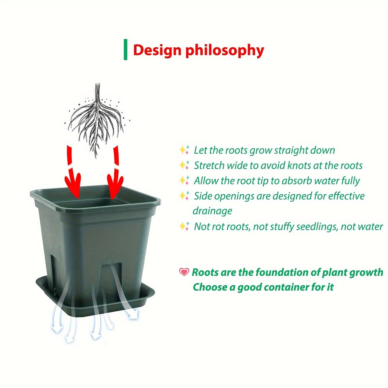 Castle Peak Basin Planters 3 Sets Big Flowerpot Planters - Breathable Square Pots for Plants, 21.5x15.2x21.5cm, Green Planter Pot